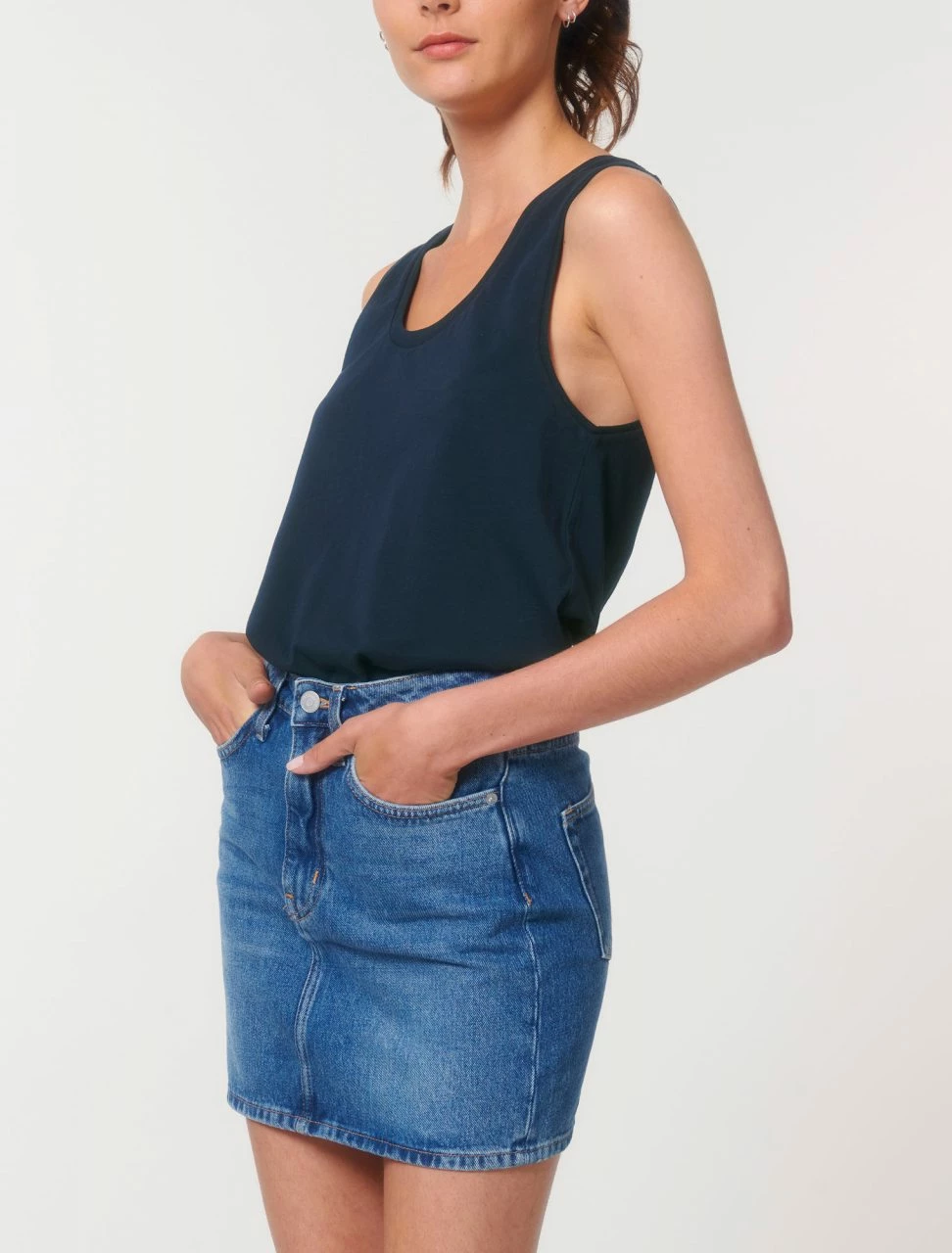Tanktop aus reiner Bio-Baumwolle. Der Rundhalsausschnitt und die breiten Träger sind mit einem feinen Rippbündchen eingefasst. Der abgerundete Saum ist leicht ausgestellt. Der weiche Single-Jersey Stoff liegt angenehm auf der Haut.