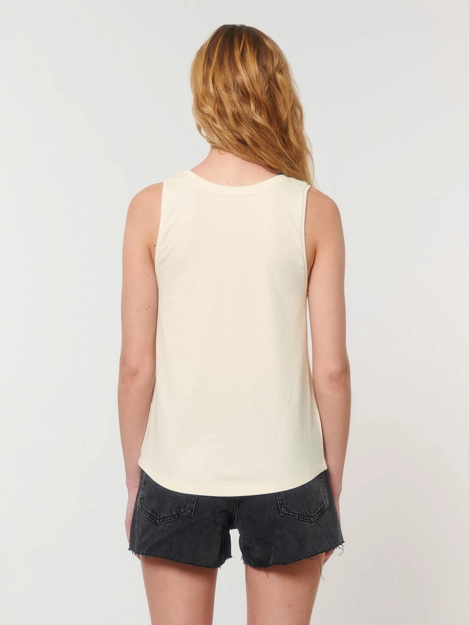 Tanktop aus reiner Bio-Baumwolle. Der Rundhalsausschnitt und die breiten Träger sind mit einem feinen Rippbündchen eingefasst. Der abgerundete Saum ist leicht ausgestellt. Der weiche Single-Jersey Stoff liegt angenehm auf der Haut.