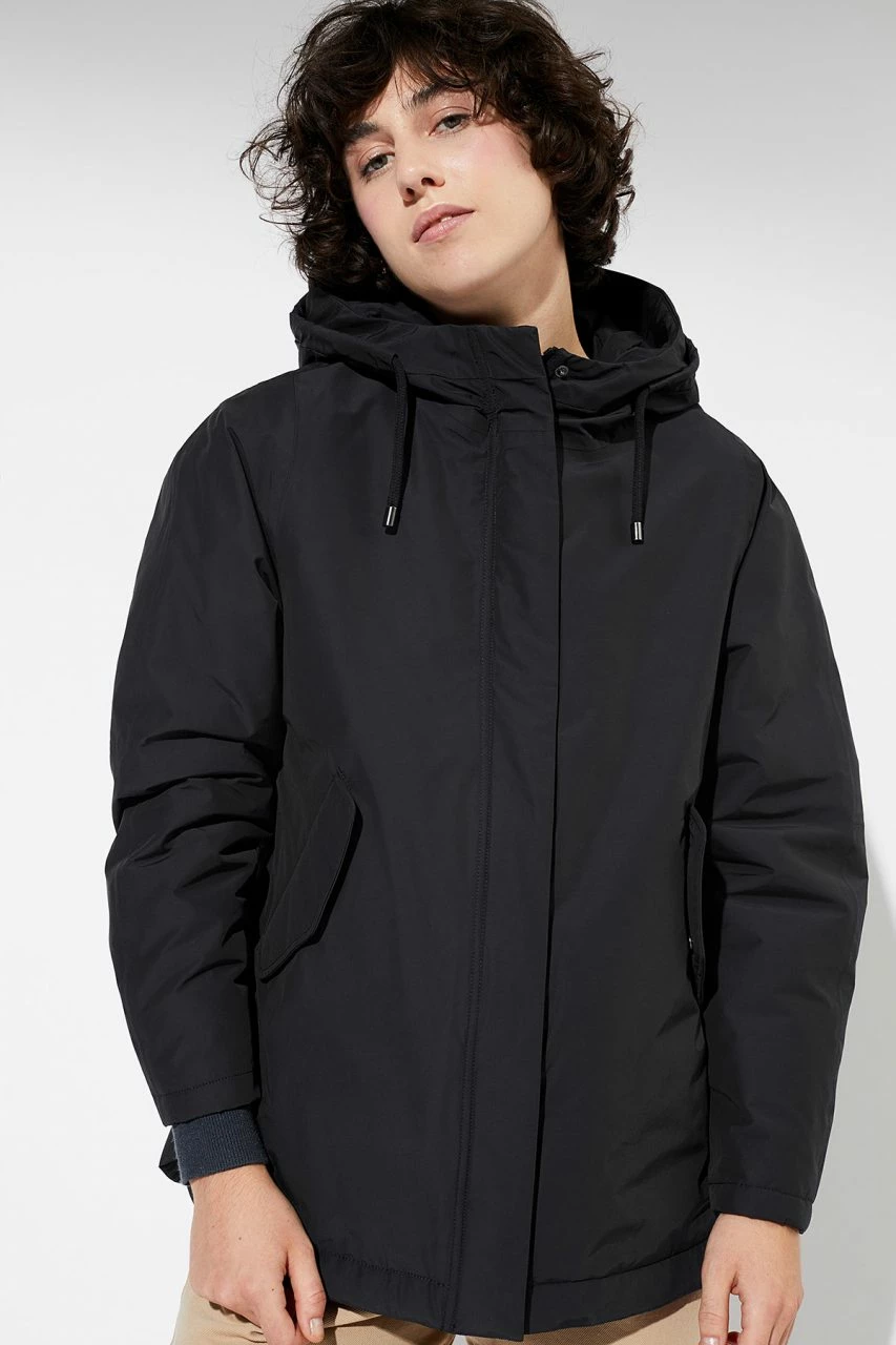 - Große wattierte Kapuze mit Kordelzug