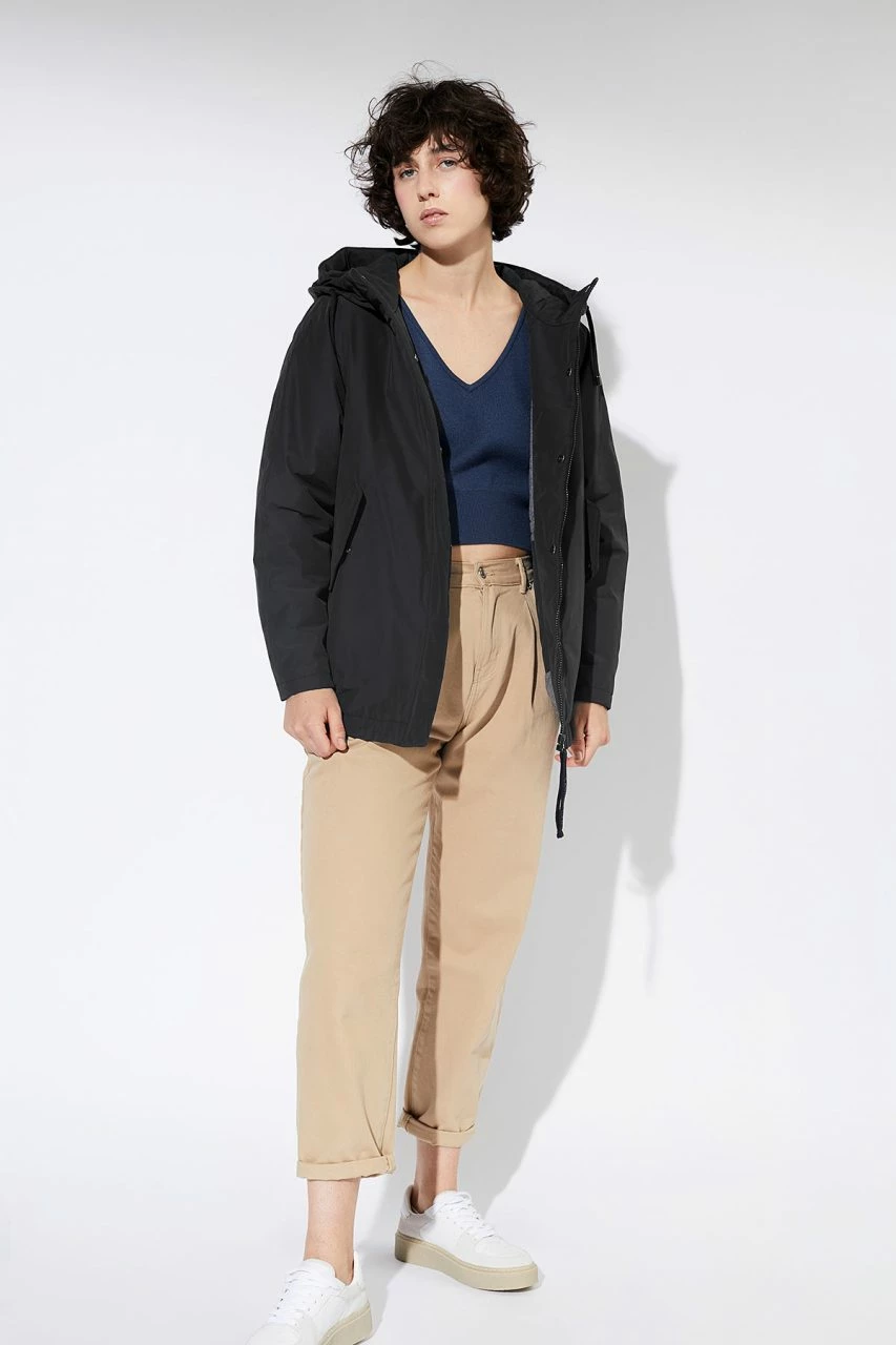 - zwei seitliche Eingrifftaschen mit Druckknopf