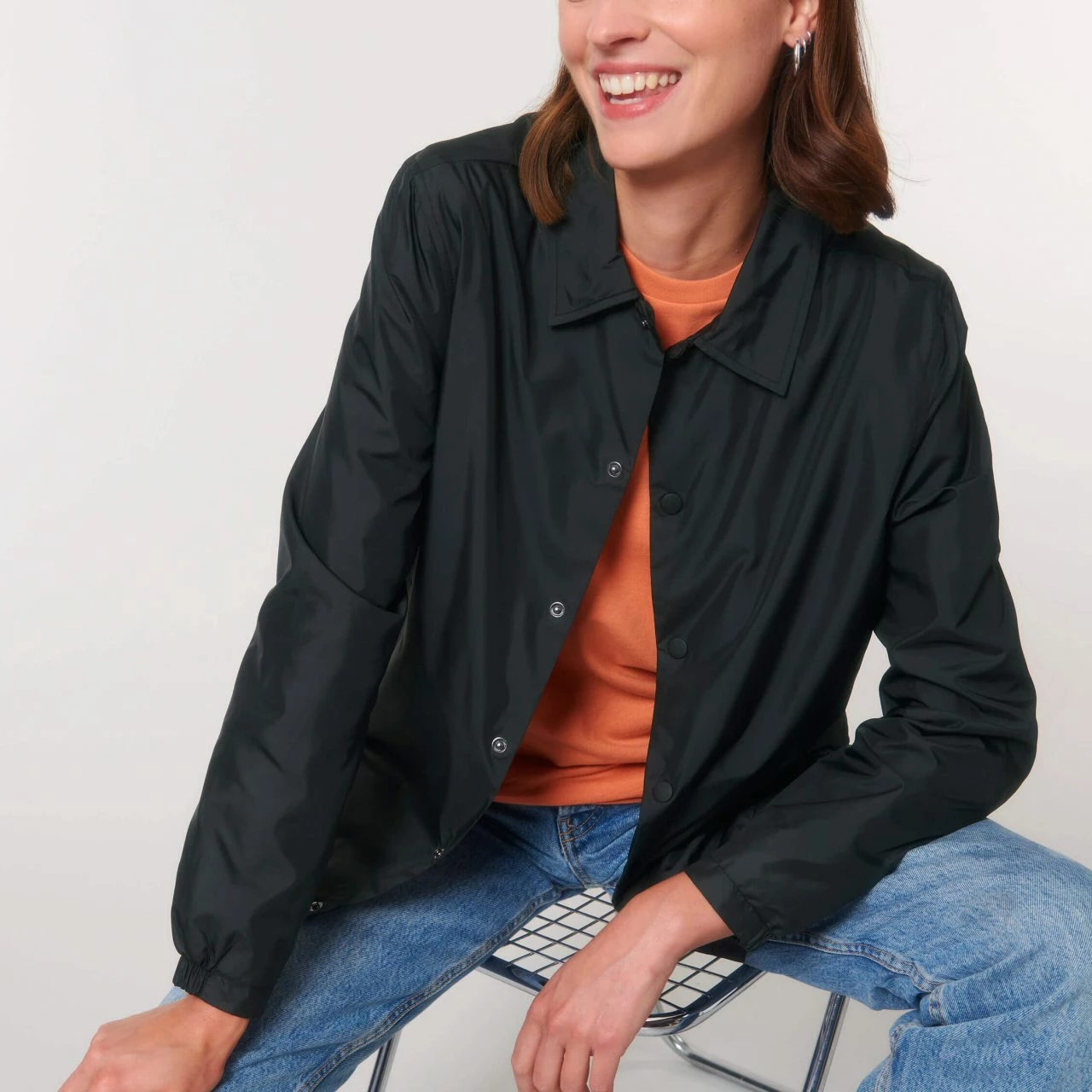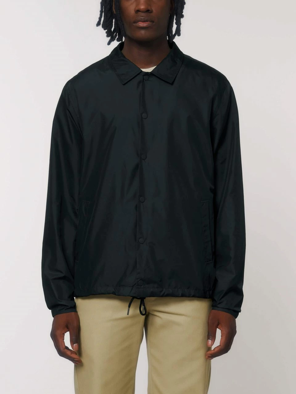 Leichte Coach Jacke aus recyceltem Polyester in normaler Passform. Die stylische Jacke hebt sich durch ihren Kentkragen und die Metallknopf-Leiste hervor. Der Hüftsaum kann durch eine Kordel in der Farbe des Hauptstoffs mit Metallenden angepasst werden. Die elastischen Ärmelbündchen sorgen für einen sportlichen Sitz. Die Jacke hat vorne zwei Leistentaschen. Der Hauptstoff ist in strapazierfähiger Leinwandbindung gefertigt und dank fluorfreier Beschichtung auch wasserabweisend. Die Innenseite ist mit atmungsaktivem Mesh-Gewebe ausgekleidet.