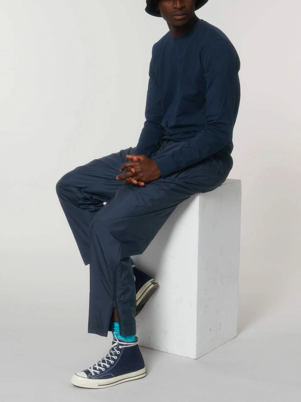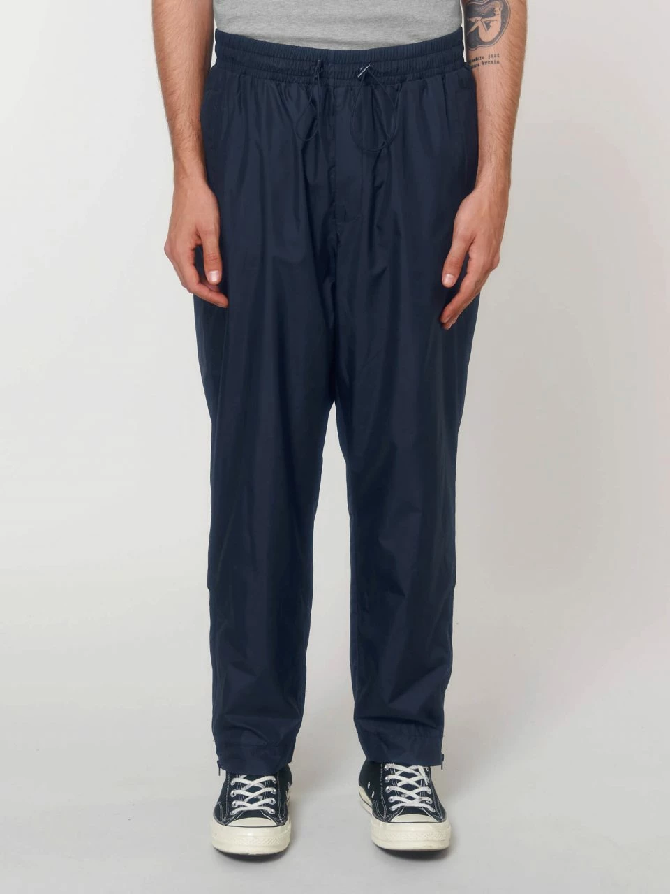 Leichte Multifunktions-Hose aus recyceltem Polyester. Die Unisex Hose ist weit geschnitten und kann daher bei ungemütlichem Wetter auch schnell und unkompliziert über die normale Hose gezogen werden. Durch Reißverschlüsse an den Beinsäumen müssen die Schuhe dafür nicht ausgezogen werden. An der Hüfte sorgt ein elastischer Bund mit Gummizügen und Stoppern für einen angenehmen, sicheren Sitz. Die Hose hat zwei Eingrifftaschen mit Reißverschluss und einen angedeuteten Hosenschlitz. Der Hauptstoff ist in strapazierfähiger Leinwandbindung gefertigt und dank fluorfreier Beschichtung auch wasserabweisend. Die Innenseite ist mit atmungsaktivem Mesh-Gewebe ausgekleidet.