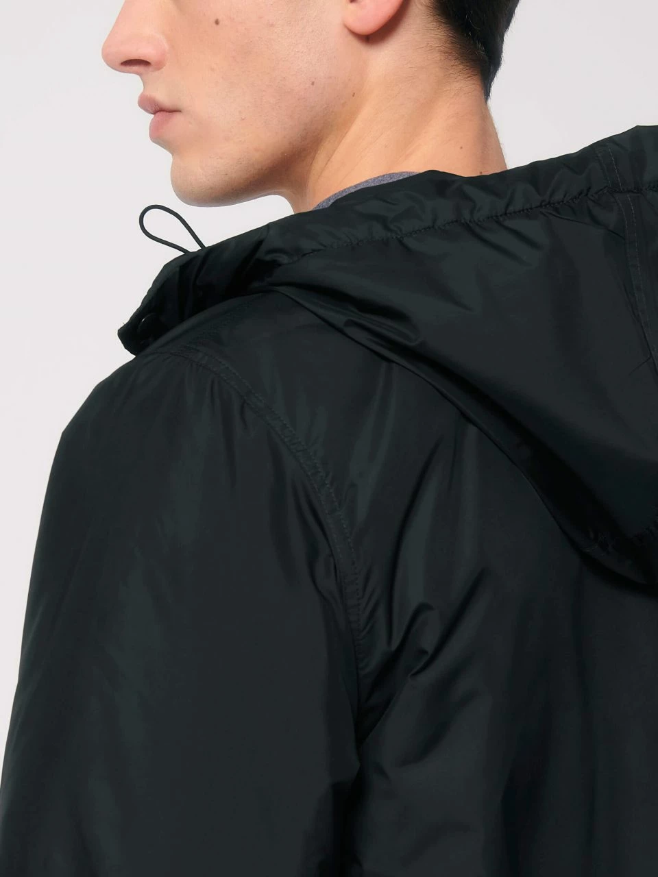 Der Artikel wird unter dem Namen grundstoff angeboten und weist eine dezente, von außen nicht sichtbare Veredelung auf. Die Jacke wird in einer von der Fair Wear Foundation (FWF) kontrollierten Produktionsstätte hergestellt.