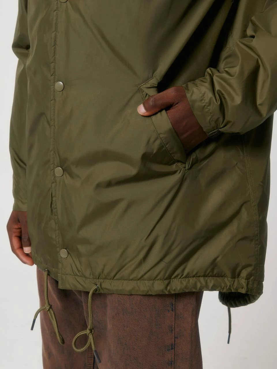 Der Artikel wird unter dem Namen grundstoff angeboten und weist eine dezente, von außen nicht sichtbare Veredelung auf. Die Jacke wird in einer von der Fair Wear Foundation (FWF) kontrollierten Produktionsstätte hergestellt.