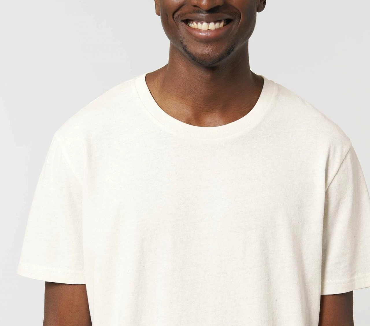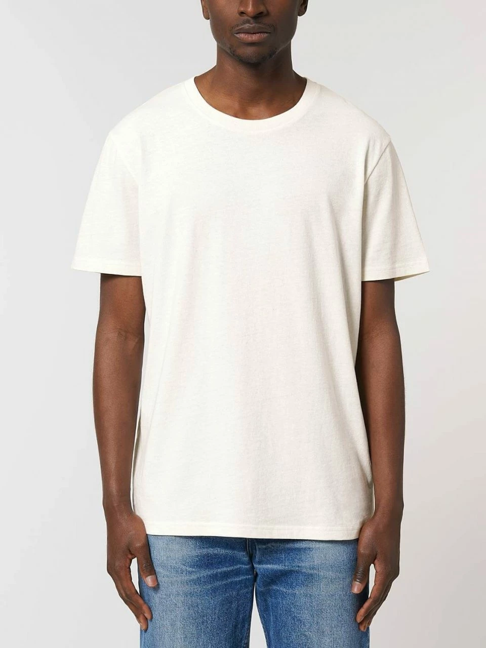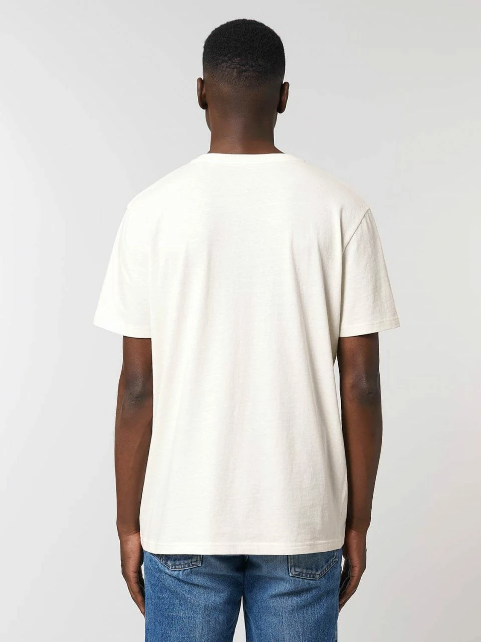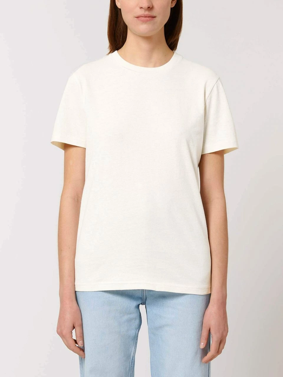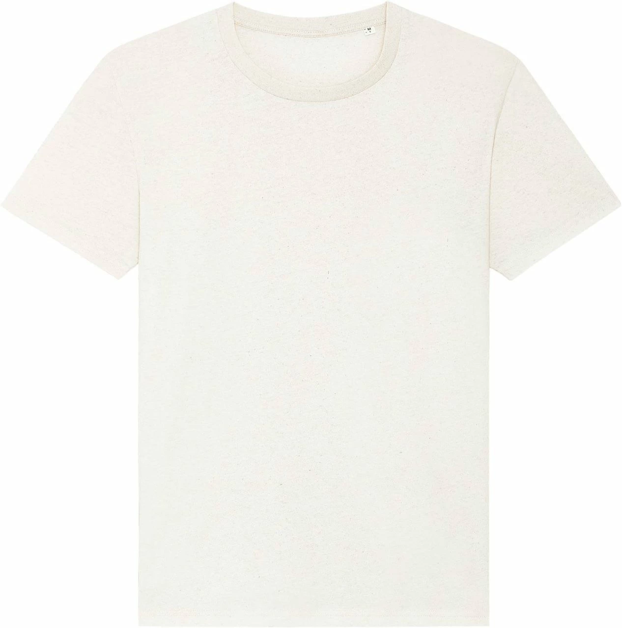 Gerade geschnittenes T-Shirt aus Bio-Baumwolle und recycelter Baumwolle. Für den nachhaltigen, »mitteldicken« Single-Jersey Stoff werden Schnittabfälle, die bei der Textilproduktion entstehen, fein geschreddert und mit ungefärbter Bio-Baumwolle zu neuem Garn versponnen. Dieses wird nicht erneut gefärbt und zeichnet sich daher durch eine melierte Optik aus. Der klassische Rundhals-Ausschnitt ist mit einem feinen Rippbund eingefasst.