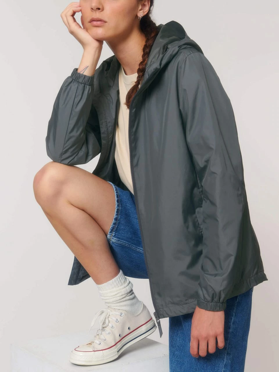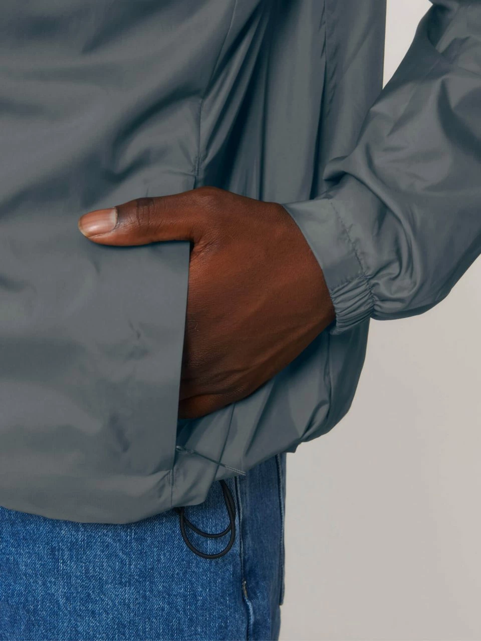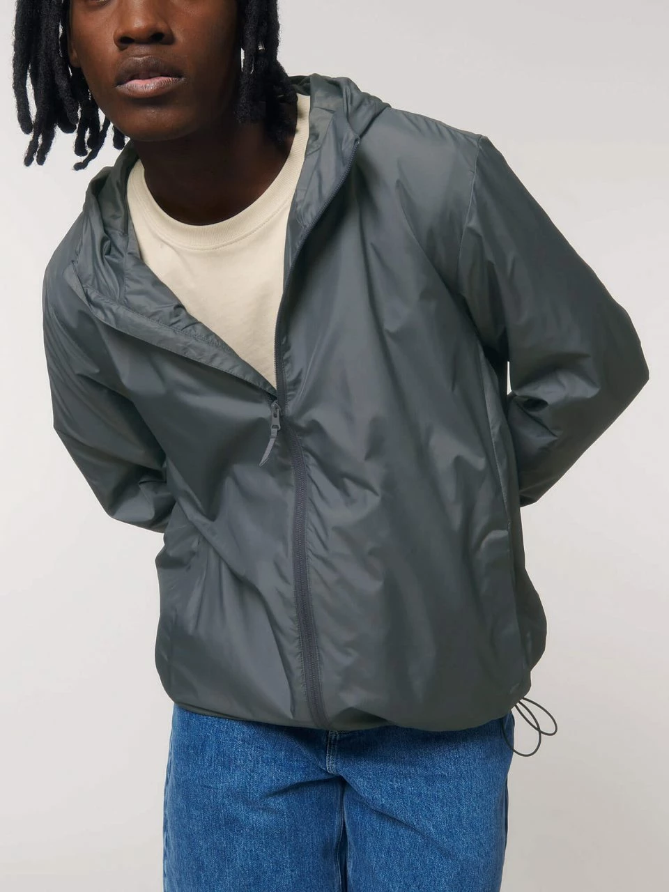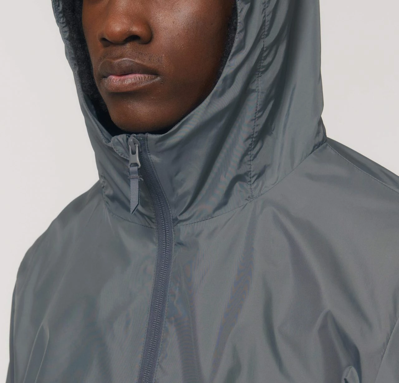 Der Artikel wird unter dem Namen grundstoff angeboten und weist eine dezente, von außen nicht sichtbare Veredelung auf. Die Jacke wird in einer von der Fair Wear Foundation (FWF) kontrollierten Produktionsstätte hergestellt.
