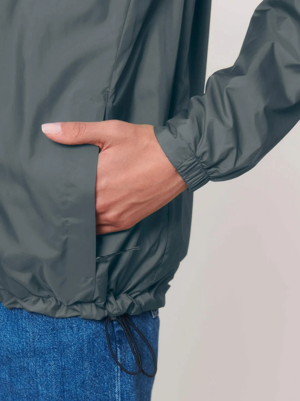 Leichter Windbreaker aus recyceltem Polyester in normaler Passform. Die Unisex Jacke kommt mit Kapuze und Nylon-Reißverschluss mit Kinnschutz. Der Hüftsaum ist am Rücken länger geschnitten und abgerundet. Kapuze und Hüfte können mit Gummizügen und Stoppern angepasst und fixiert werden. Die elastischen Ärmelbündchen sorgen für einen sportlichen Sitz. Die Jacke hat vorne zwei Leistentaschen mit Reißverschluss. Der Hauptstoff ist in strapazierfähiger Leinwandbindung gefertigt und dank fluorfreier Beschichtung auch wasserabweisend. Die Innenseite ist mit atmungsaktivem Mesh-Gewebe ausgekleidet.