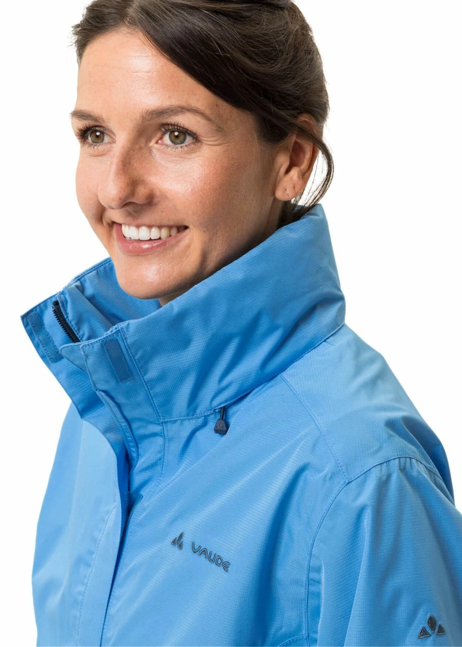 Leichte Damen Regenjacke Escape Light Jacket von VAUDE in zeitlosem Design. Die Jacke ist wasserdicht, winddicht und atmungsaktiv. Ärmelbündchen, Kapuze und Saum sind individuell anpassbar. Die Kapuze kann zudem aufgerollt und verstaut werden. Die Jacke wird mit einem Reißverschluss und zusätzlichem Klettverschluss verschlossen, auch starker Wind hat hier keine Chance! Ein funktionaler sowie sportlich moderner Look für kühle Sommertage!