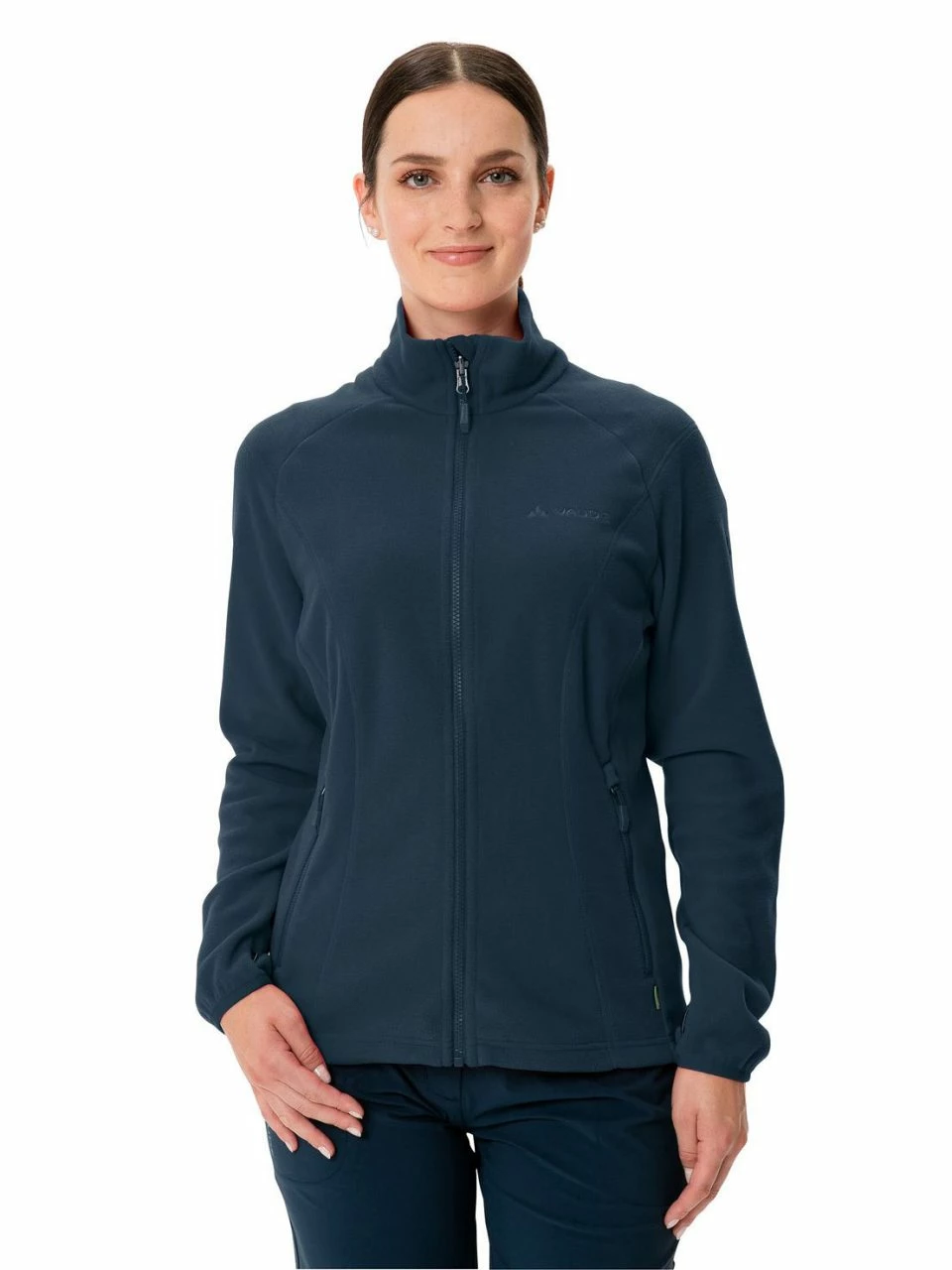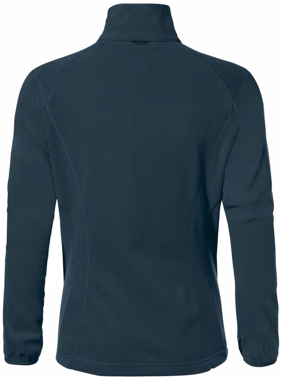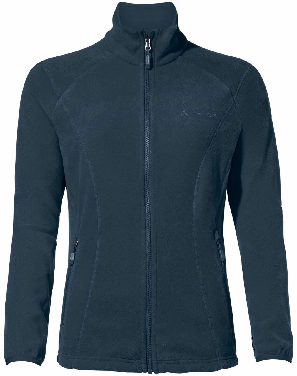 »Rosemoor Fleece Jacket II« von VAUDE ist eine ideale Wahl für die Übergangszeit! Die weiche Fleece-Jacke aus recyceltem Polyester ist komfortabel geschnitten und lässt sich bei kälteren Temperaturen auch bequem unter einer wetterfesten Jacke tragen. Der hohe Kragen schützt den Hals vor Wind. Die Weite des Hüftsaums lässt sich in den beiden Fronttaschen durch einen Kordelzug anpassen.