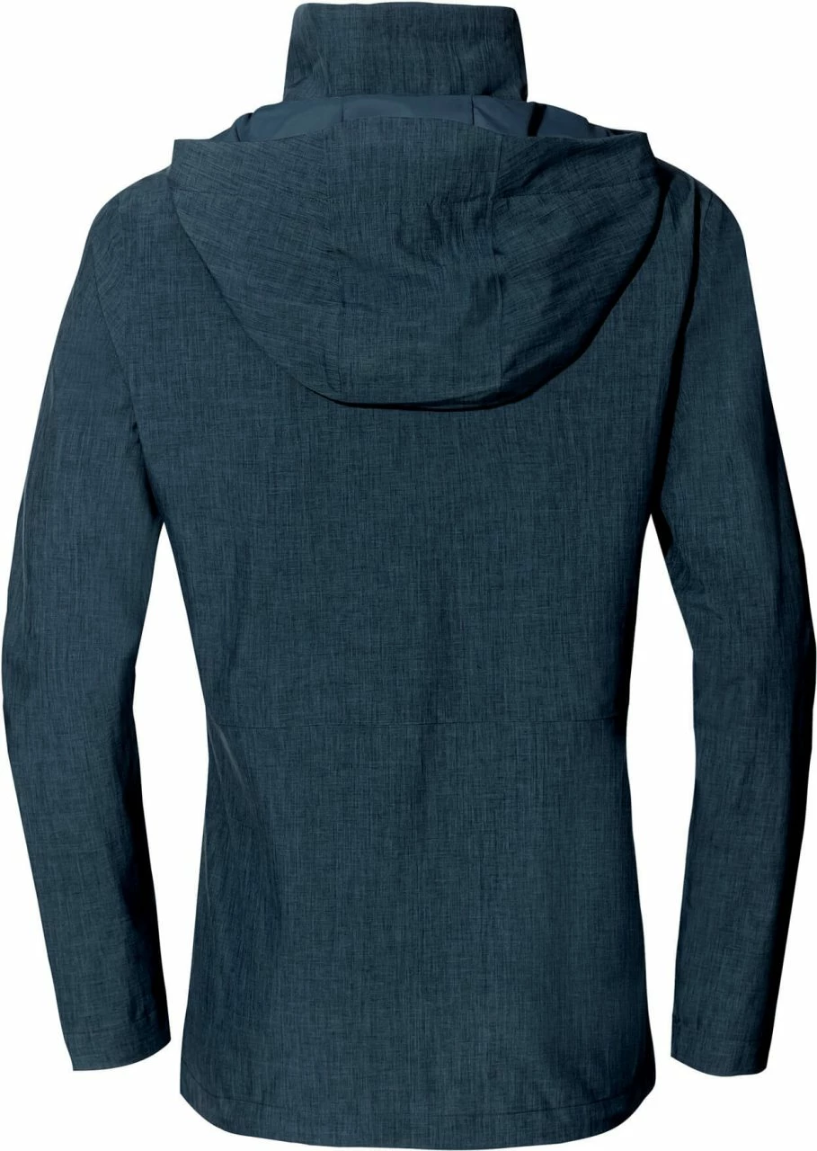 Leichte Damen Regenjacke Rosemoor Jacket II von VAUDE in moderner, melierter Optik. Die Jacke ist wasserdicht, winddicht und atmungsaktiv. Ärmelbündchen, Kapuze und Saum sind individuell anpassbar. Die Jacke wird mit einem Reißverschluss und zusätzlichem Klettverschluss verschlossen, auch starker Wind hat hier keine Chance! Eine funktionale und moderne Jacke für kühle Sommertage!