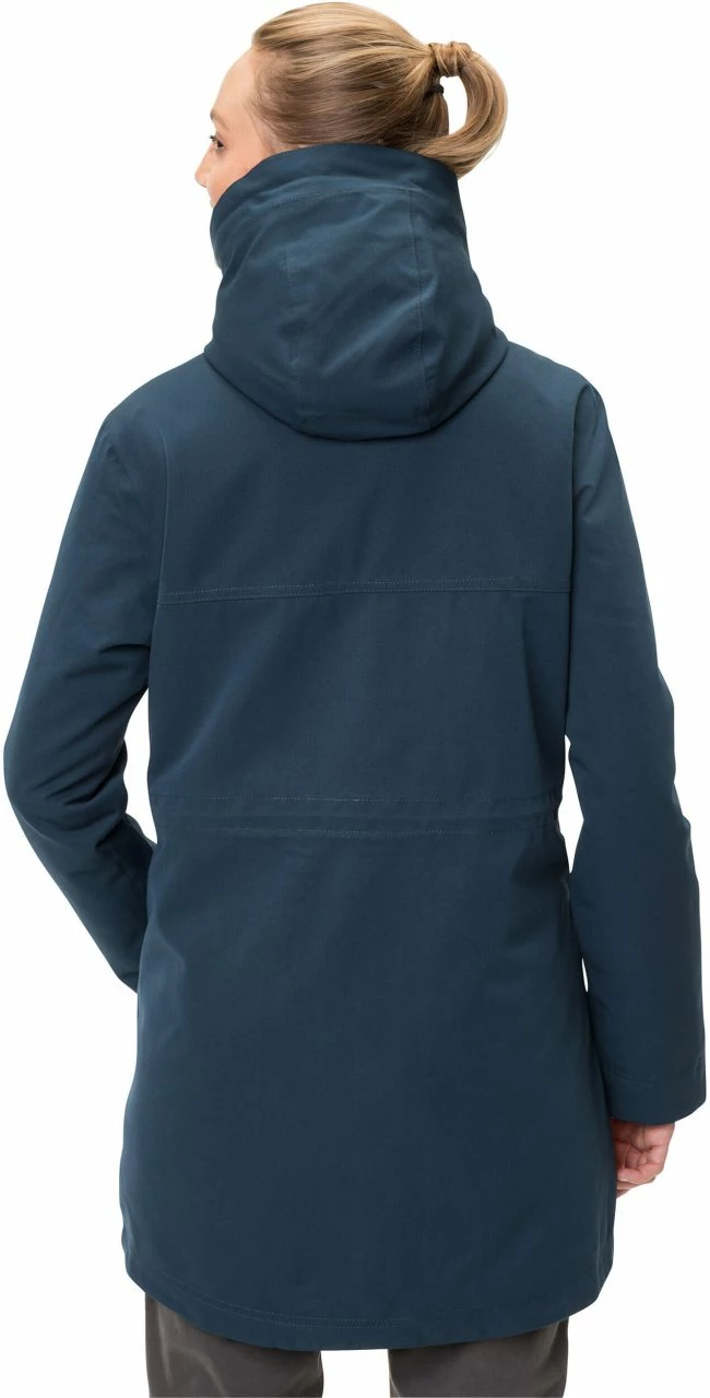 »Manukau Parka II« von VAUDE ist eine stilsichere Winterjacke für den modernen Alltag. Die Jacke ist zeitlos designt und ganz sicher auch noch im nächsten und übernächsten Winter ein zuverlässiger Begleiter – insbesondere dann, wenn es darauf ankommt und das Wetter kalt, nass und windig ist. Der Manukau Parka II ist lang geschnitten, wattiert kommt mit einer wind- und wasserdichten Membran. Durch die »Primaloft® Black Insulation« aus recyceltem Polyester und das flauschige Fellimitat in Kapuze und oberem Rücken schützt die Winterjacke stets vor Kälte, bleibt dabei aber atmungsaktiv und angenehm zu tragen. Breite, innenliegende Bündchen am Handgelenk sorgen dafür, dass keine unangenehmen Kältebrücken entstehen. Der Kragen schließt hoch ab und schützt den Halsbereich vor Kälte und Wind.