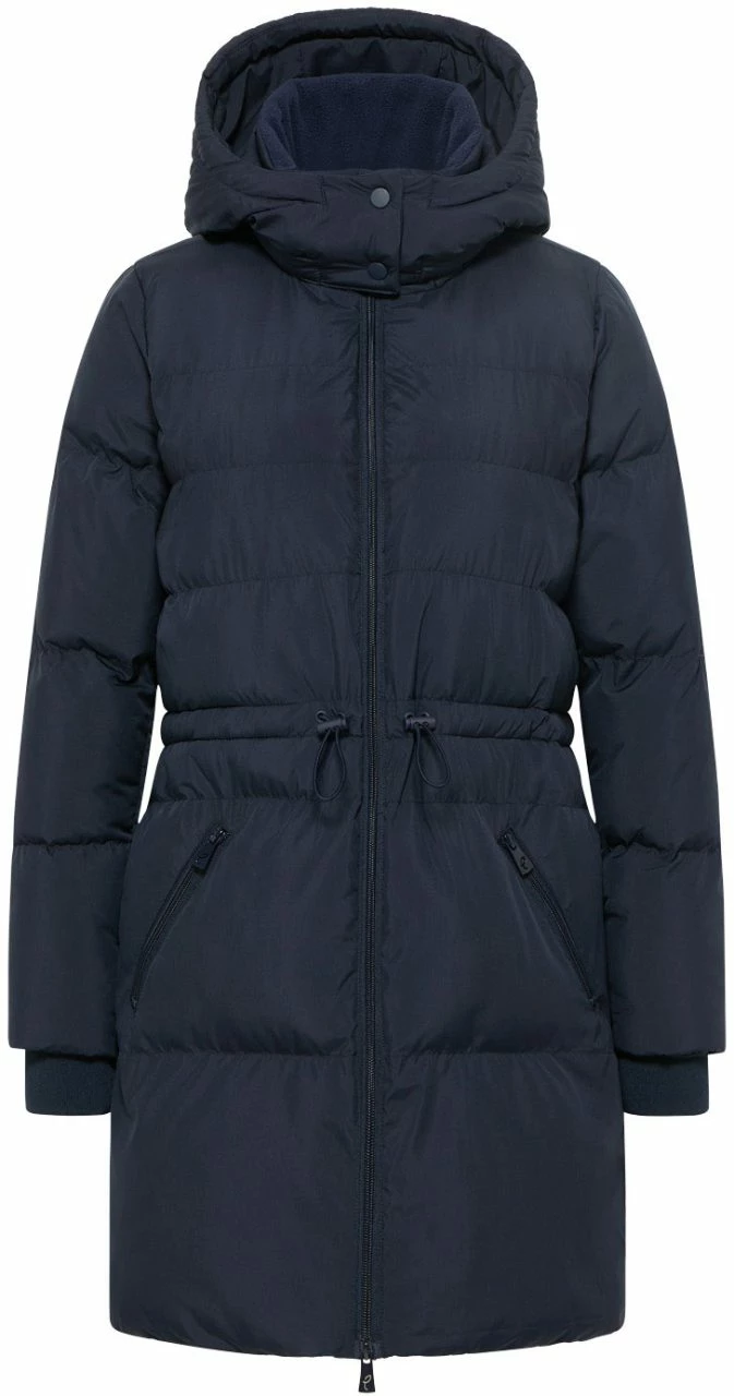 Die Kapuze ist ebenfalls wattiert und lässt sich durch einen Reißverschluss schnell und unkompliziert abnehmen. Mit Kordeln kannst du die Weite der Kapuze und der Taille nach Belieben anpassen, während Baumwollbündchen an den Ärmeln dafür sorgen, dass kein Windhauch zu dir durchdringt. Für die Extraportion Komfort sind der hohe Kragen und die schräg angesetzten Taschen mit weichem Fleece gefüttert.