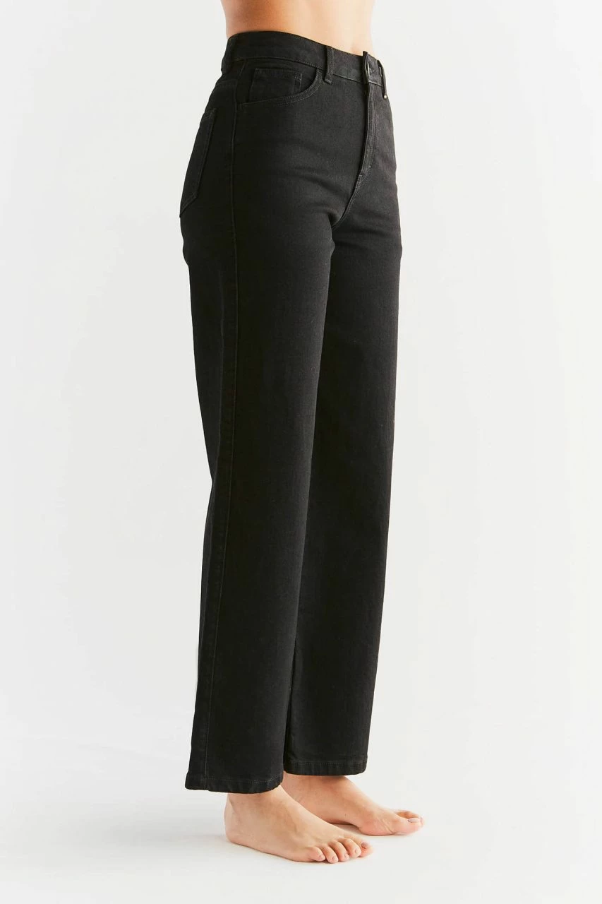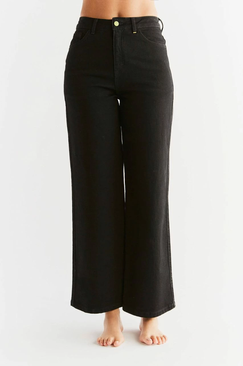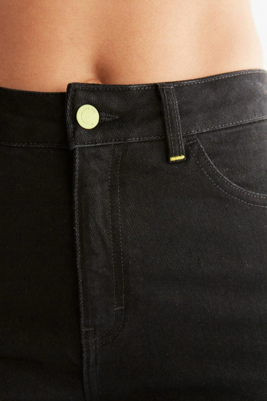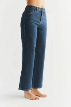 Weit geschnittene Damen Jeans aus nachhaltigen Materialien. Das Hosenbein sitzt lockerer und wird nach unten hin weiter, so bietet die Hose hohen Tragekomfort und viel Bewegungsfreiheit. Die Wide Leg Jeans präsentiert sich in einem cleanen Look komplett ohne Nieten oder Patches. Geschlossen wird die Hose mit einem matt schimmernden, gelben Knopf und YKK NATULON® Zipper aus recyceltem Polyester. Das Nähgarn besteht ebenfalls aus wiederverwertetem Polyester (Coats Epic EcoVerde).